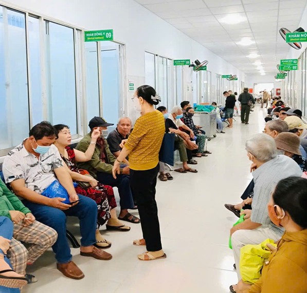 Hình 2: Bệnh nhân chờ khám bệnh tại các bàn khám của khoa Khám bệnh