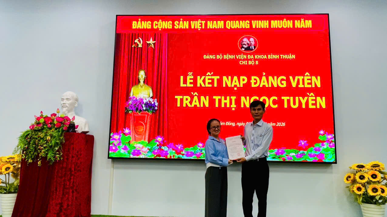 Thực hiện kế hoạch trên, ngày 03/02/2026, Chi bộ 8 (gồm khoa Hồi sức tích cực – Chống độc và khoa Gây mê hồi sức) đã tổ chức Lễ kết nạp đảng viên mới cho quần chúng ưu tú Trần Thị Ngọc Tuyền – Bác sĩ y khoa, nhân viên khoa Hồi sức tích cực – Chống độc, đúng quy định của Điều lệ Đảng.