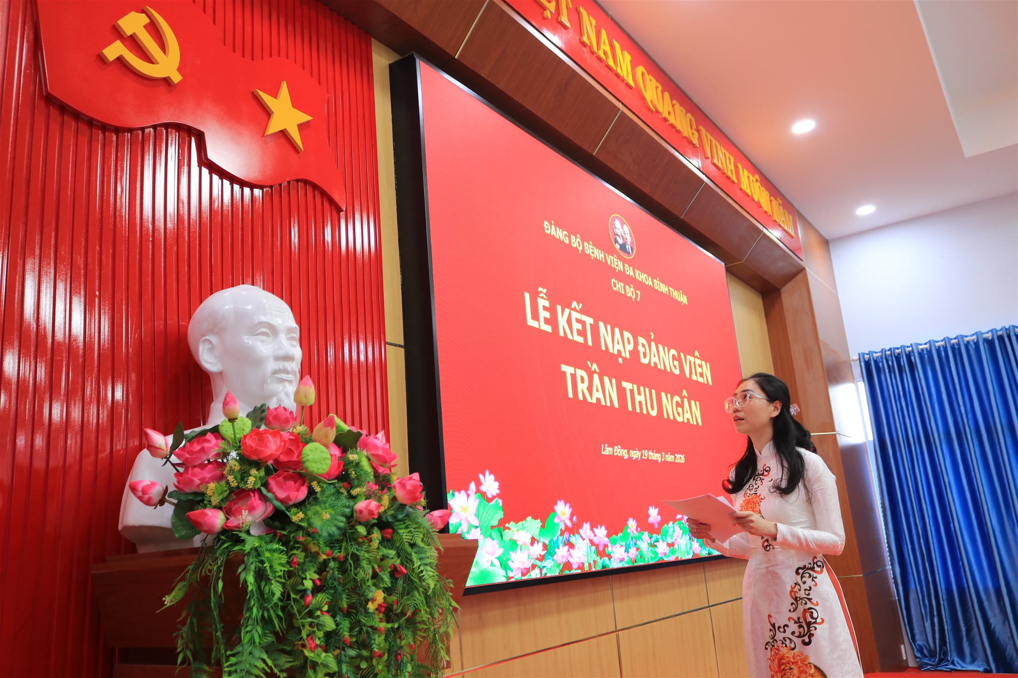 Sáng ngày 19/3/2026, Chi bộ 7 trực thuộc Đảng bộ Bệnh viện Đa khoa Bình Thuận tổ chức Lễ kết nạp Đảng cho quần chúng ưu tú Trần Thu Ngân.